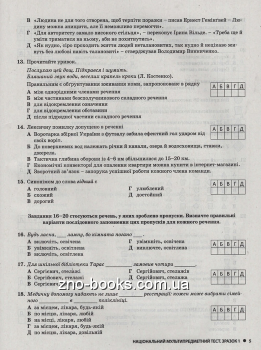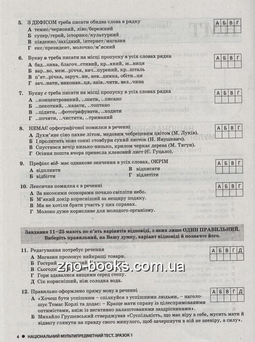 Посібник містить тренувальні завдання, які допоможуть випускникам загальноосвітніх навчальних закладів на високому рівні підготуватися до НМТ ( національний мультипредметний тест ) з української мови. Збірник містить 8 варіантів тестових завдань, розроблених за специфікацією НМТ з української мови УЦОЯО.