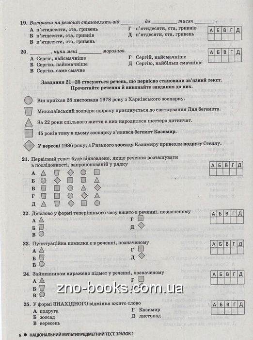 - 10 завдань з вибором однієї правильної відповіді з чотирьох;