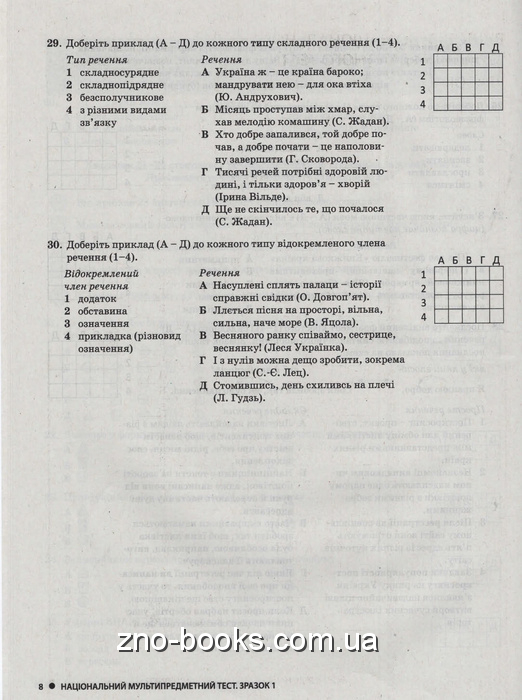 - 5 завдань – на встановлення відповідності (4 з 5).
