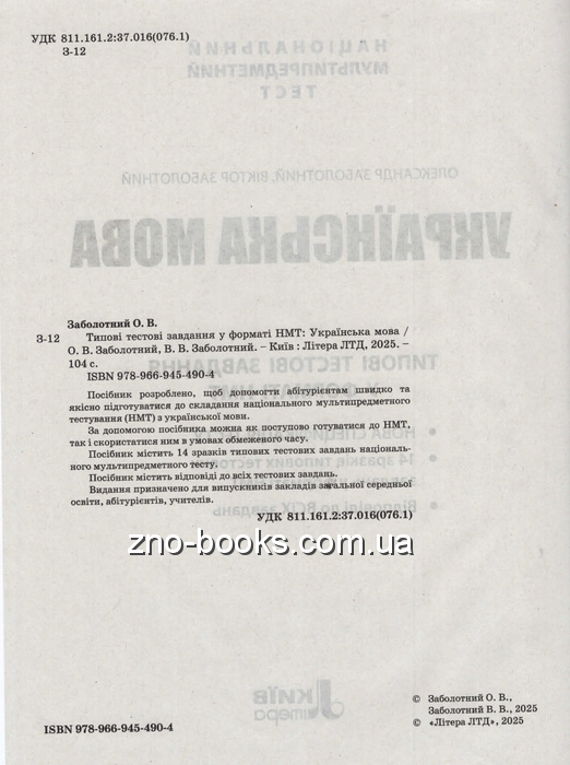 НМТ 2026 Українська мова. Типові тестові завдання у форматі НМТ : Заболотний О. Літера. купити