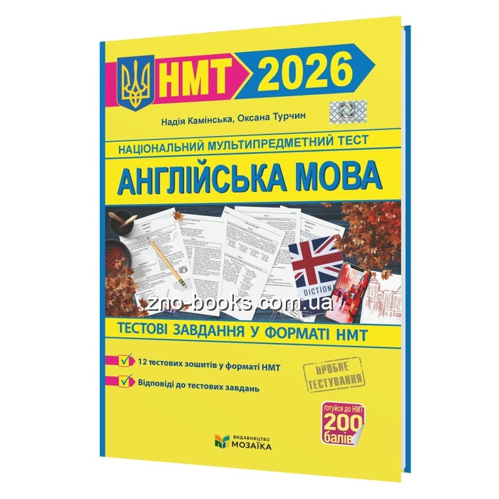 НМТ 2026 Англійська мова. Тестові завдання у форматі НМТ : Камінська Н., Турчин О. Видавництво Мозаїка