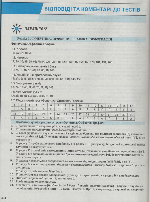 • Відповіді та коментарі до тестових завдань