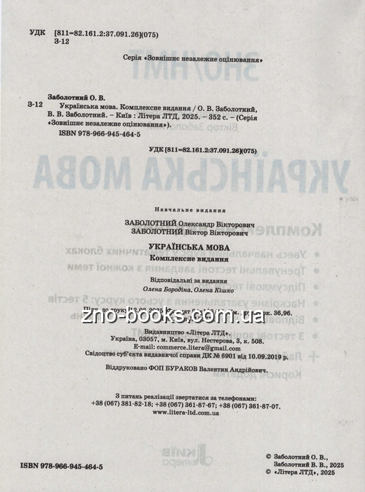 ЗНО НМТ 2026 Українська мова. Комплексне видання : Заболотний О., Заболотний В. : Літера. купити