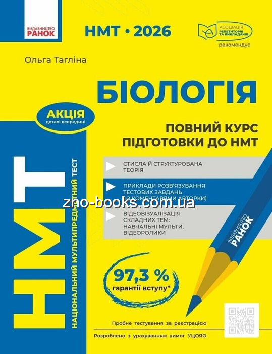 Біологія. Повний курс підготовки до НМТ 2026 : Тагліна О. видавництво Ранок.