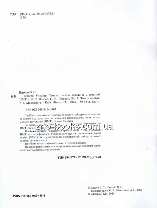 НМТ 2026 Історія України. Типові тестові завдання у форматі НМТ : Власов В., Панарін О. Літера. купити