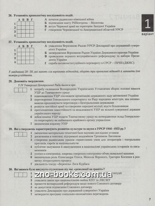 - 3 завданння – з вибором 3 правильних відповідей із 7 запропонованих варіантів.