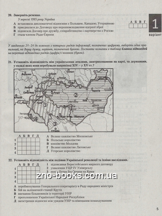 - 20 завдань – з вибором однієї правильної відповіді з чотирьох;